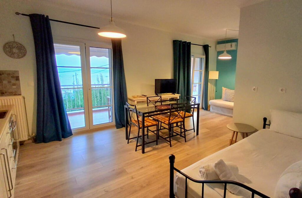 Εκεί που η άνεση συναντά την ευκολία και κάθε στιγμή νιώθεις σαν στο σπίτι σου. Μέγεθος: Έως 20m² Χωρητικότητα: 2 ενήλικες Κρεβάτι: Queen Size (160x200cm) Μπάνιο: Ντους Θέα: Πλευρική θέα στη θάλασσα Το standard δίκλινο στούντιο, στον 1ο όροφο, με πλευρική θέα στη θάλασσα, προσφέρει άνετη διαμονή για δύο άτομα. Το κύριο χαρακτηριστικό […]